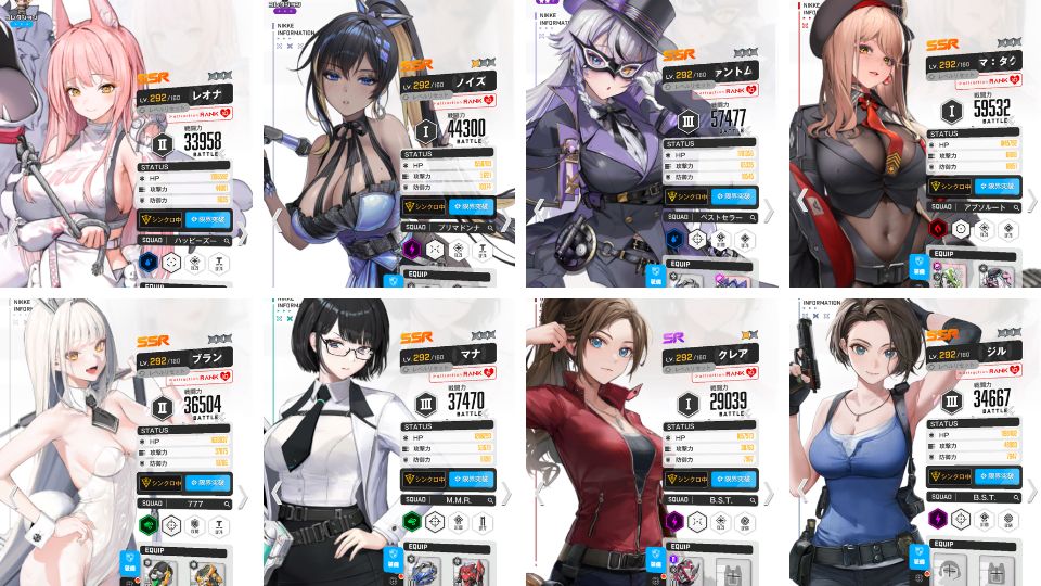 レオナ、ノイズ、ファントム、エマ、ブラン、マナ、クレア、ジル、バニーエード、バニーミルク、エイダなど